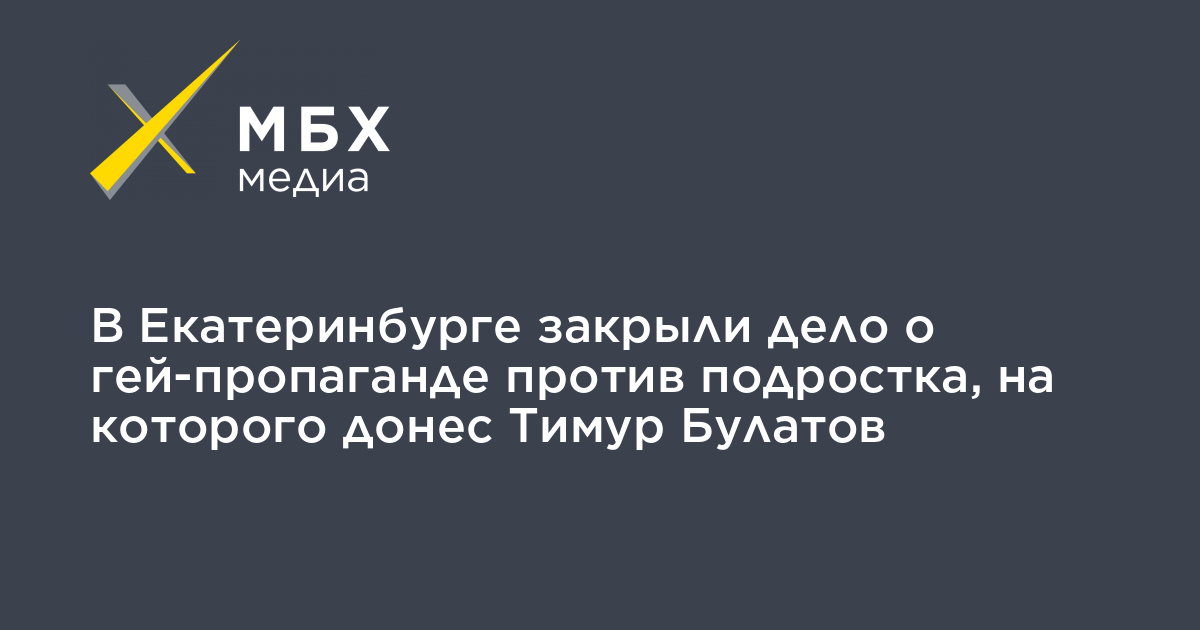 В Екатеринбурге сотрудники полиции закрыли административное дело по ч.2 ст. 6.21 КоАП (пропаганда нетрадиционных сексуальных ценностей в интернете) против 16-летнего подростка, на которого написал заявление активист Тимур Булатов. Об этом «МБХ медиа» сообщил юрист Никита Томилов.