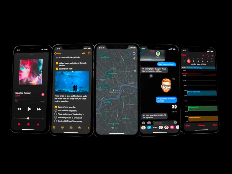 Едва ли не главным нововведением в новой iOS стала так называемая "темная" тема, о появлении которой мечтали многие пользователи. Этой функции в Apple посвятили отдельный ролик, подчеркнув, что темный фон полезнее для глаз в условиях низкой освещенности.