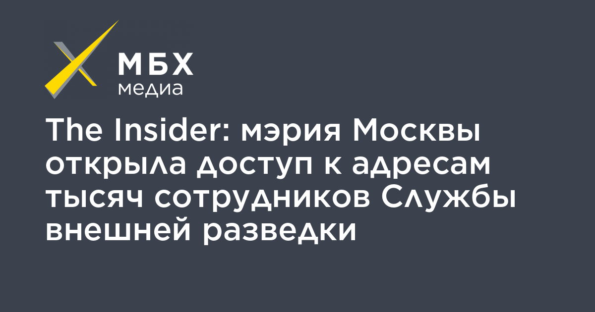 The Insider: мэрия Москвы открыла доступ к адресам тысяч сотрудников Службы внешней разведки