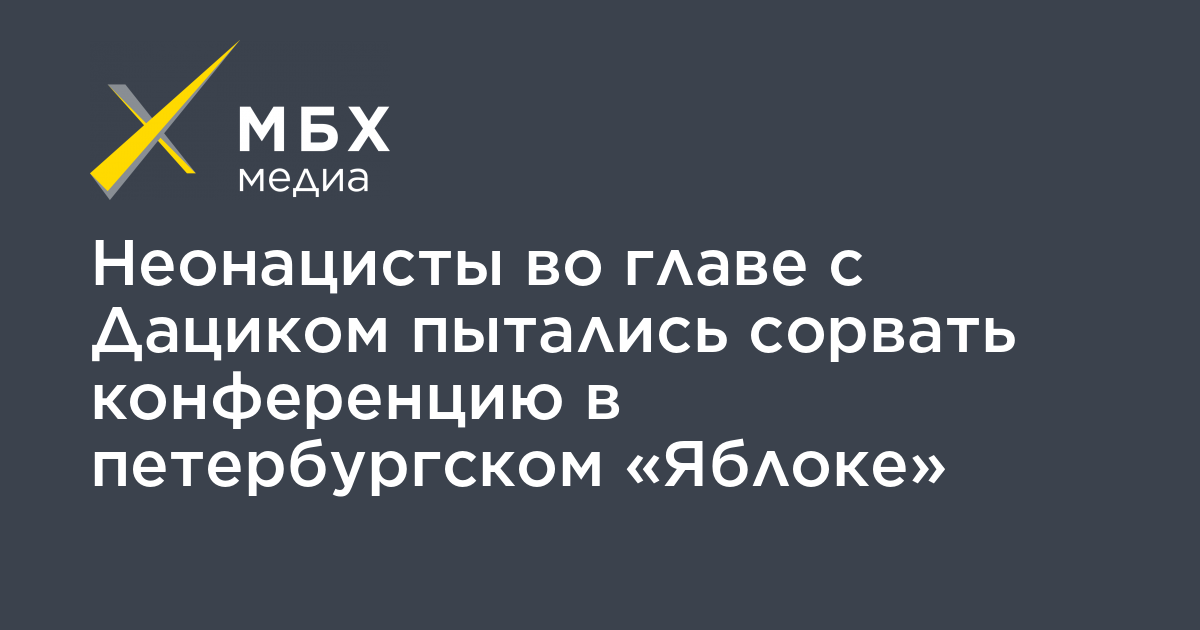 Более десяти неонацистов во главе в Вячеславом Дациком пришли в офис партии «Яблоко» в Петербурге и попытались сорвать конференцию по выдвижению кандидата в губернаторы города. Об этом «МБХ медиа» сообщила инструктор партии Ольга Никитина.