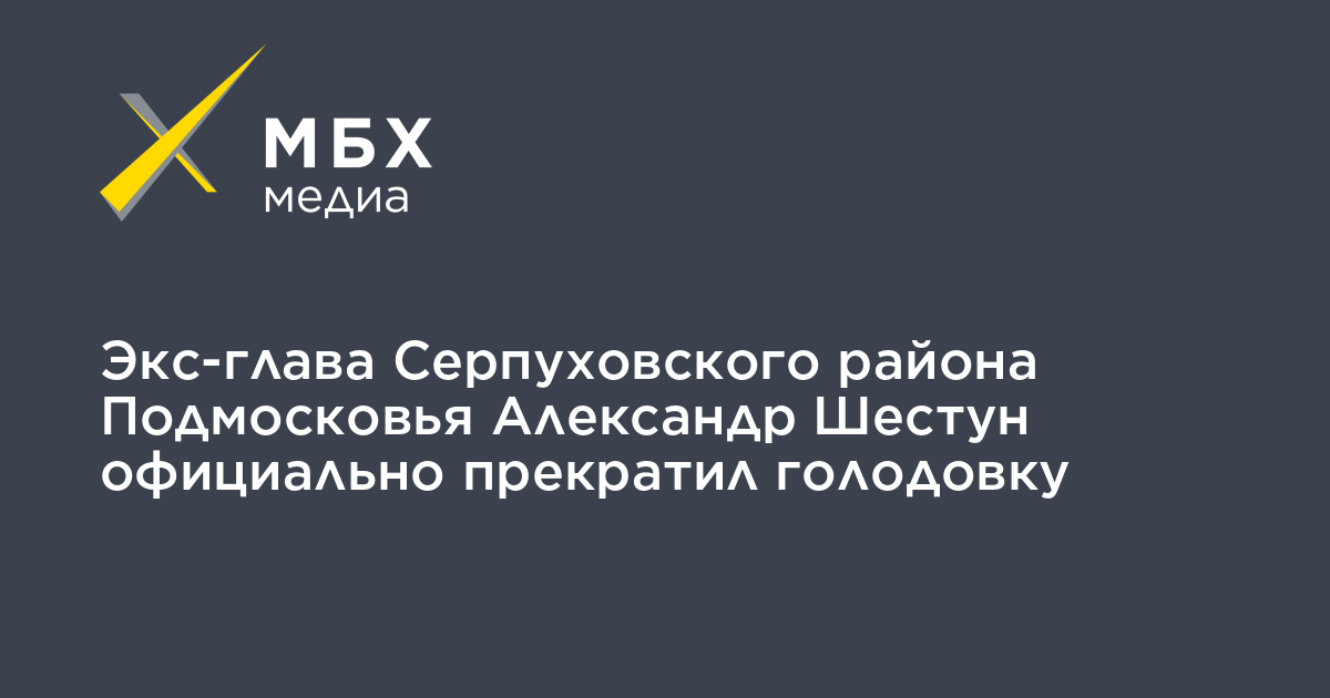 Бывший глава Серпуховского района Подмосковья Александр Шестун, который обвиняется в мошенничестве, написал официальное заявление о прекращении голодовки. Об этом «МБХ медиа» сообщила его жена Юлия.