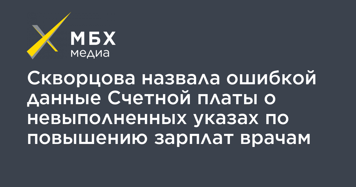 «Это ошибка, которая была допущена при составлении отчета Счетной палаты. Выполнением указа считается выполнение с 5-процентным отклонением, то есть 95 и больше процентов, так было исходно прописано <…> Я хочу сказать, что с учетом этих критериев по врачам все 85 регионов выполнили индексацию заработной платы по среднему персоналу, и по младшему медперсоналу четыре региона имеют отклонения от 5% до 10%», — сказала Скворцова.