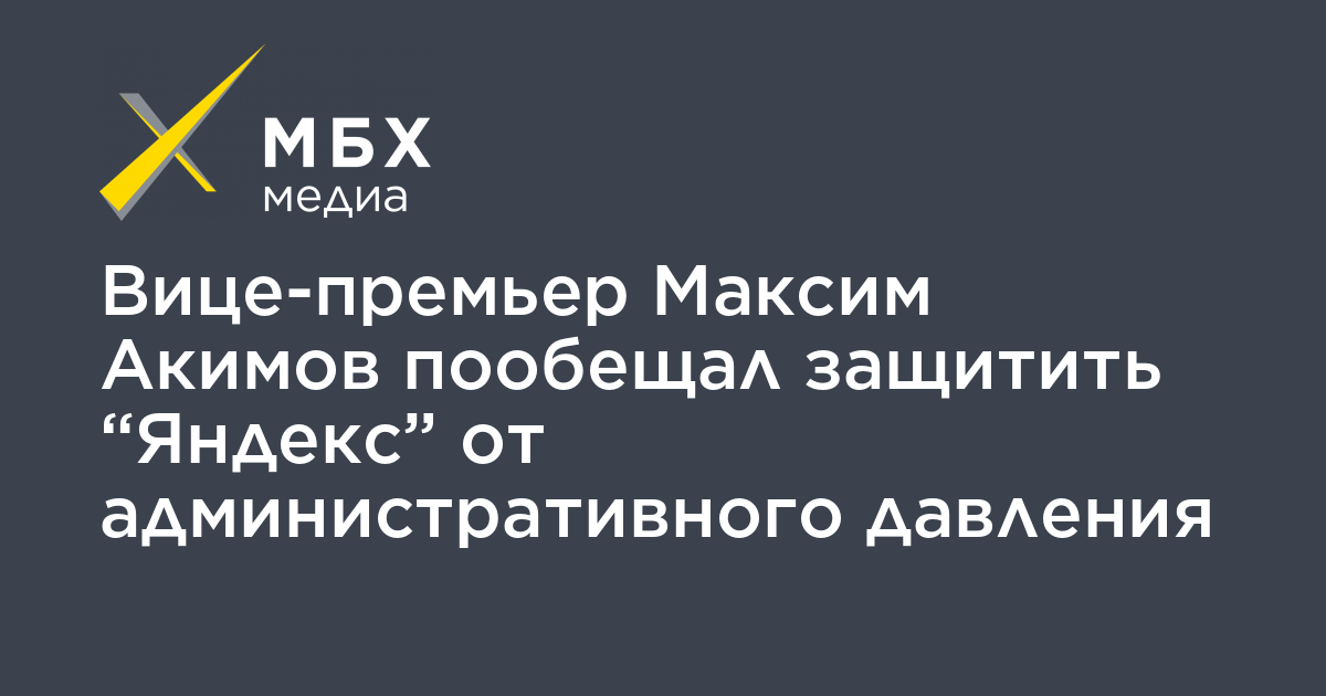 Вице-премьер Максим Акимов пообещал защитить «Яндекс» от административного давления