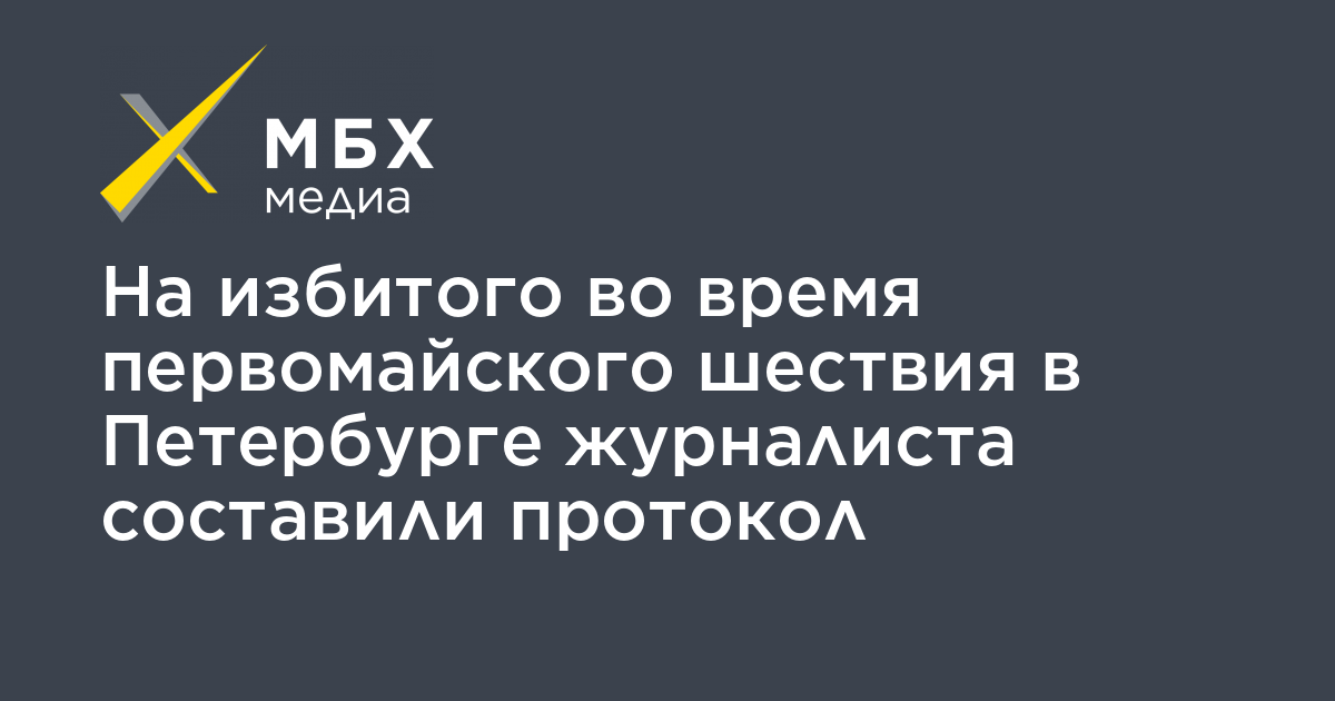 На журналиста издания mr7.ru Георгия Маркова, который рассказал об избиении полицейскими во время первомайского шествия в Санкт-Петербурге, составили протокол о нарушении правил проведения митинга (часть 5 статьи 20.2 КоАП). Об этом он рассказал «МБХ медиа».