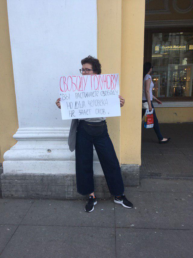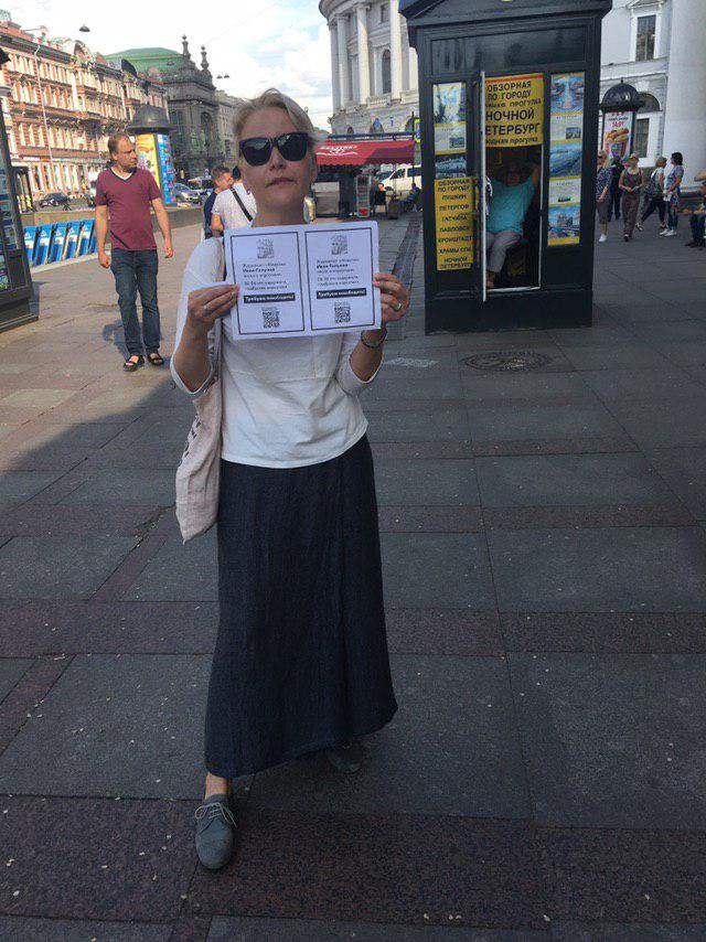 У Гостиного двора продолжаются одиночные пикеты в поддержку Ивана Голунова