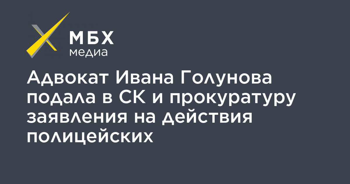 Адвокат Ивана Голунова Ольга Динзе накануне отправила заявления в Следственный комитет и прокуратуру на действия сотрудников полиции УВД по ЗАО, задержавших журналиста. Об этом она сообщила «МБХ медиа».