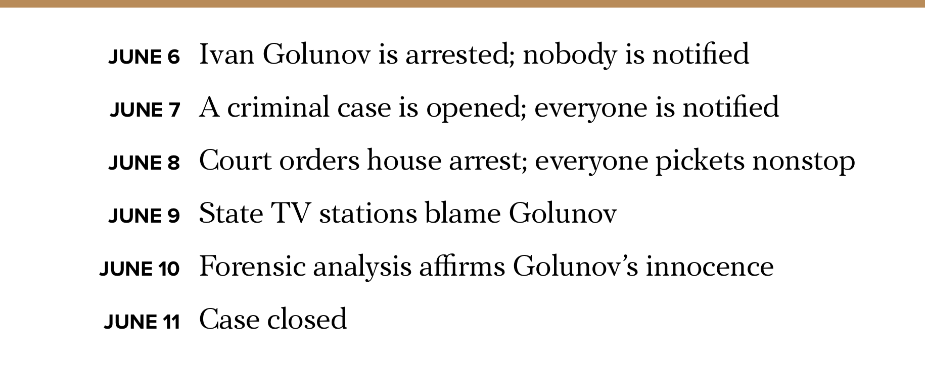 Дата11.06.2019АвторСкрытИсточникМедузаСохранённая копияInternet ArchiveOriginal MaterialShow translationFive historic days in the case of Ivan Golunov Cover photo: Yevgeny Feldman for Meduza