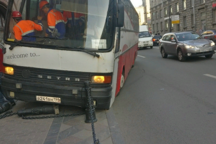 Из фотографий следует, что автобус с пометкой «Заказной» следовал до «Черной речки». В нем находились рабочие в спецодежде и касках. По словам очевидцев, среди пешеходов никто не пострадал.
