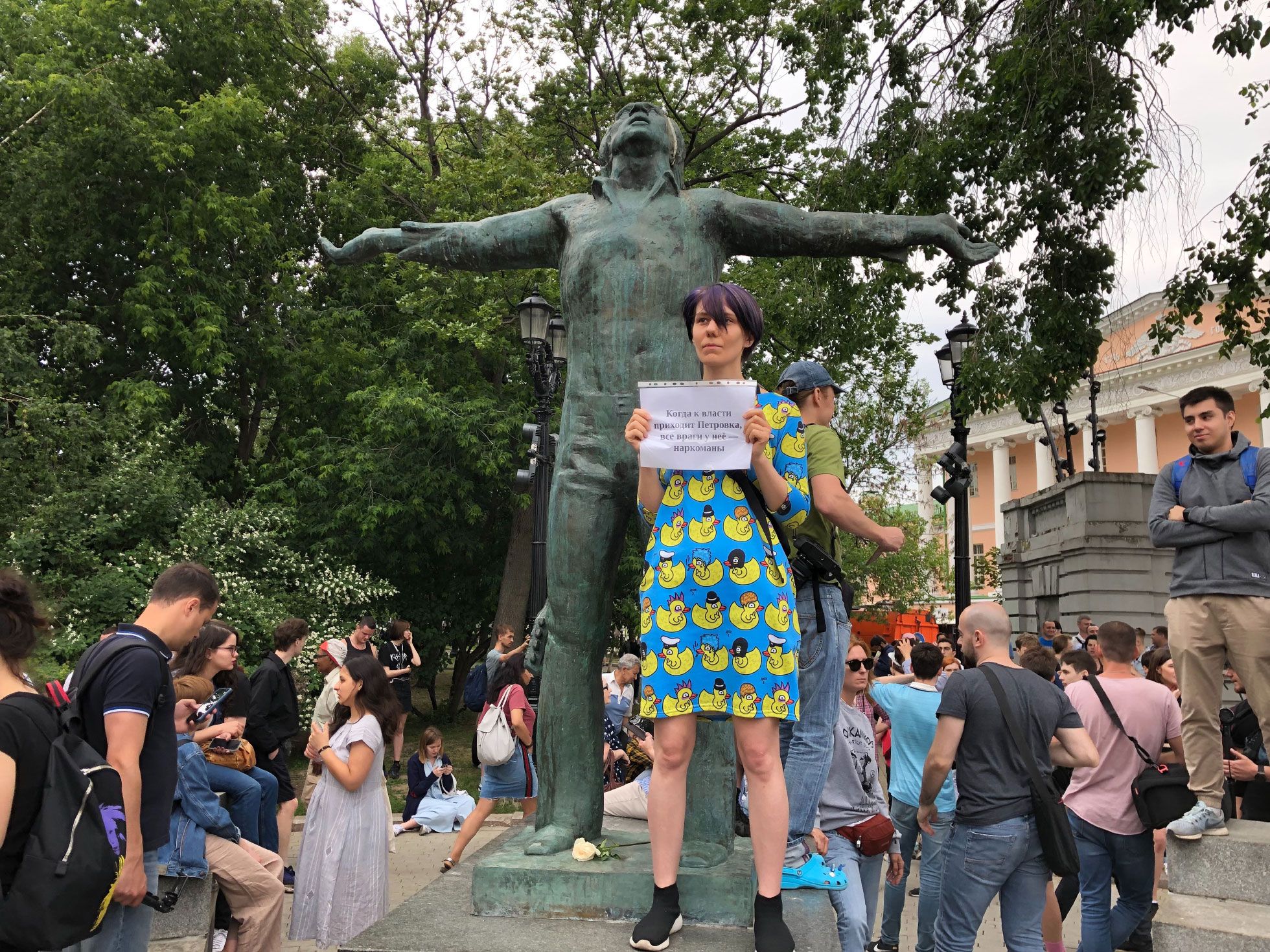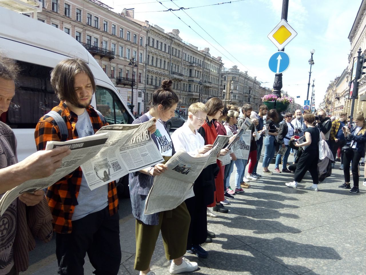 В Петербурге 12 июня прошла серия одиночных пикетов на площади Восстания. Участники держали в руках газеты в поддержку Ивана Голунова. Никто не задержан
