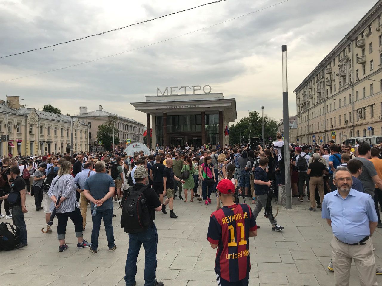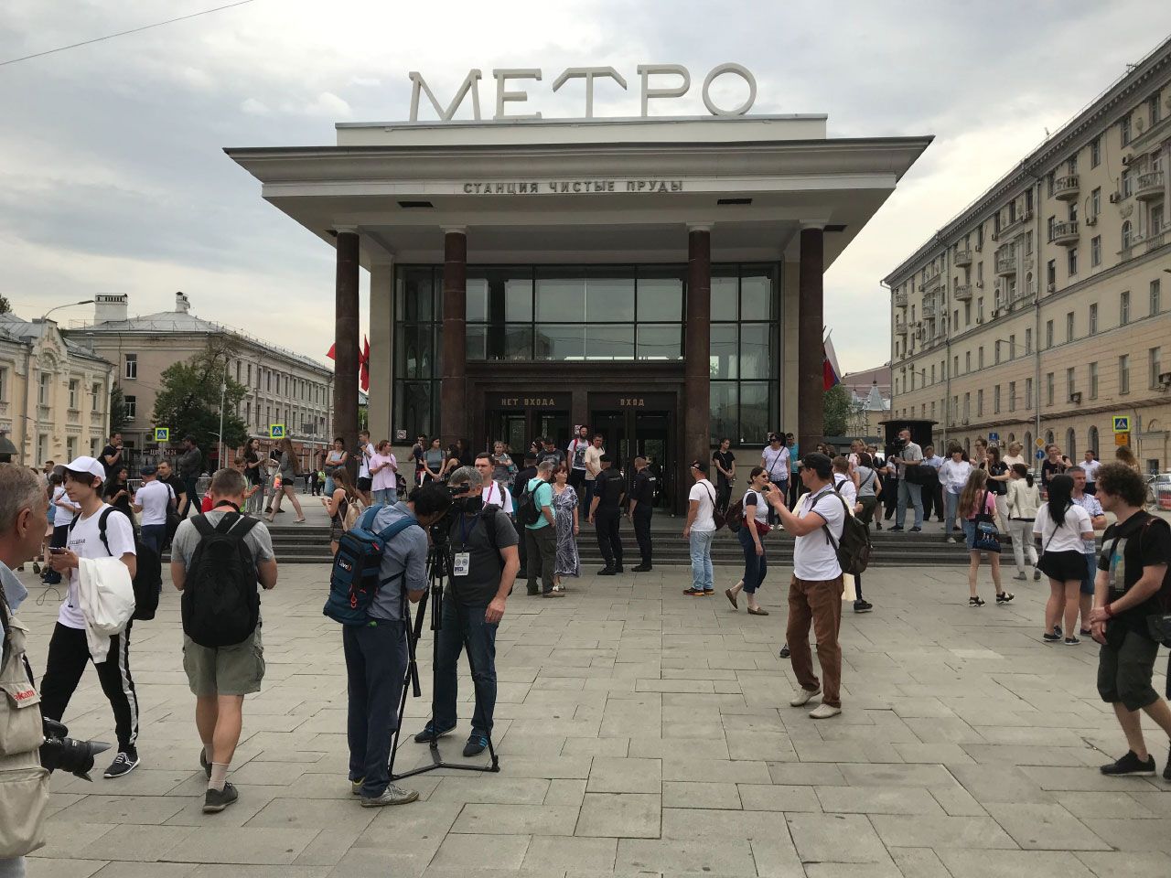 Площадь у входа в метро «Чистые пруды», где собираются участники марша