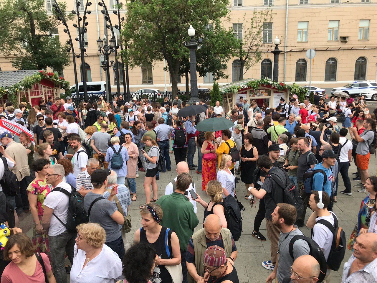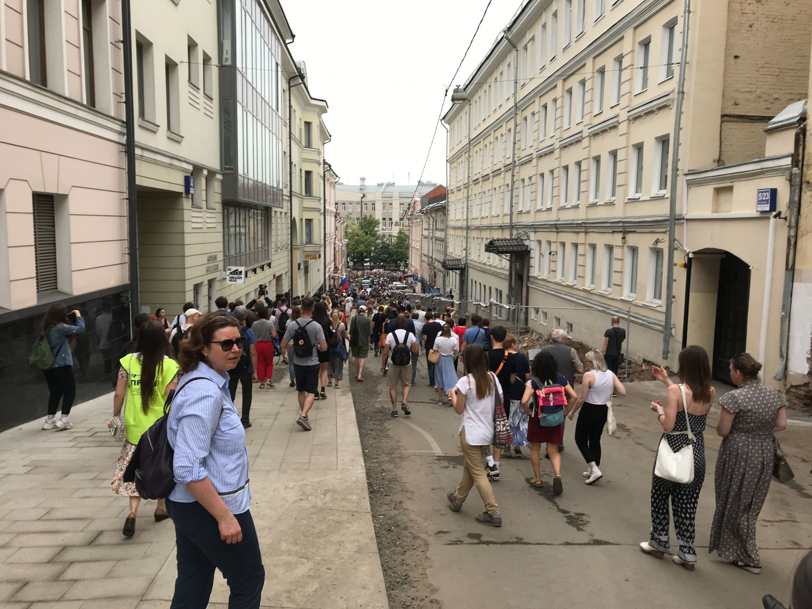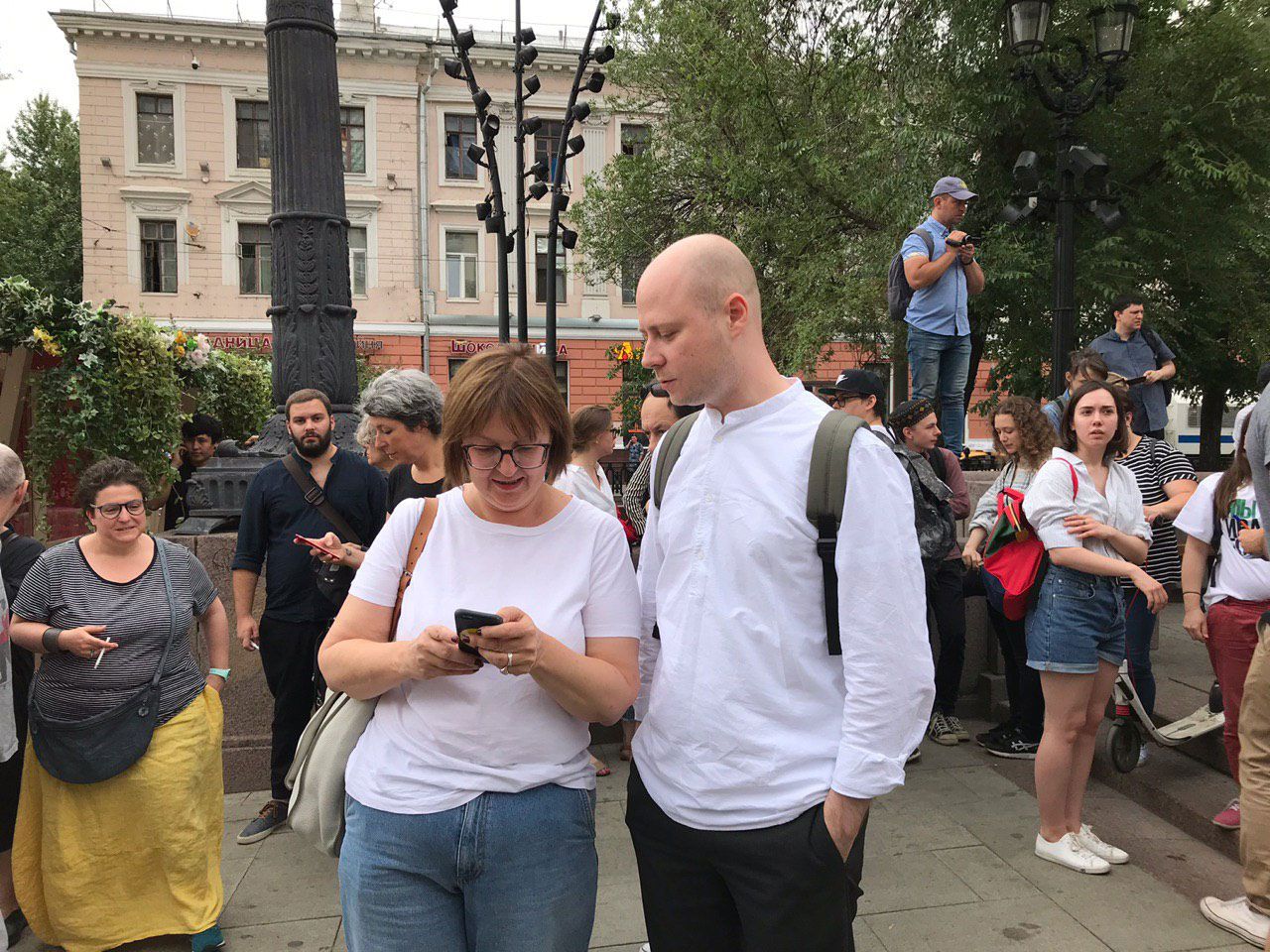 «У меня смешанное ощущение, потому что сначала были единичные задержания людей в майках или с плакатами в поддержку Ивана Голунова, а потом, ближе к памятнику Высоцкому, стали задерживать людей уже в массовом порядке и иногда довольно грубо. Задержания имели произвольный характер. По моей информации, задержали некоторых журналистов, сотрудников «Коммерсанта» и «Новой газеты».