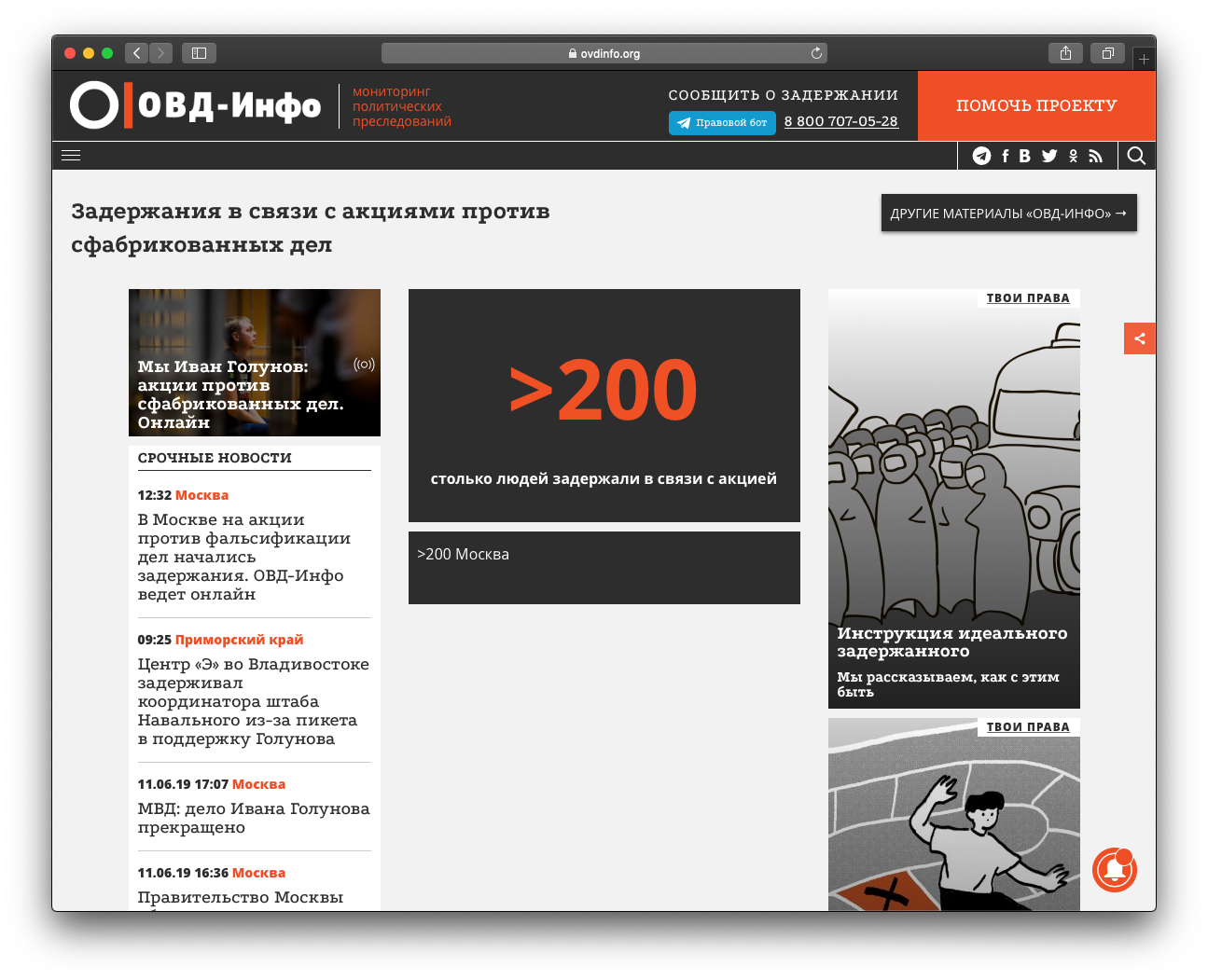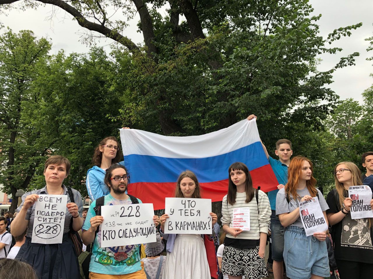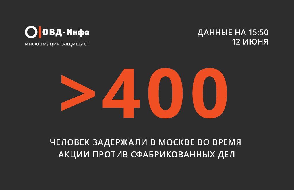 12 июня в центре Москвы проходит марш от Чистых прудов до здания ГУ МВД по Москве. Акция была анонсирована несколько дней назад как марш в поддержку журналиста «Медузы» Ивана Голунова, которого обвиняли в попытке сбыта наркотиков. Инициаторам акции и мэрии Москвы не удалось договориться об обеспечении безопасности участников демонстрации. 11 июня уголовное дело Ивана Голунова было прекращено. Отказываться от акции не стали, однако ее инициаторы заявили, что считают «невозможным призывать выходить на марш — пусть каждый решает сам». По состоянию на 13:00 мск задержаны более 400 человек.