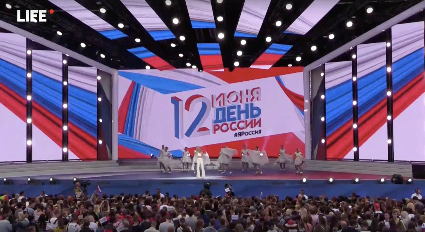 На Красной площади идет концерт в честь Дня России. С участием Григория Лепса, Стаса Михайлова, Сергея Лазарева, Димы Билана, Валерии, Александра Розенбаума, Николая Баскова и других.