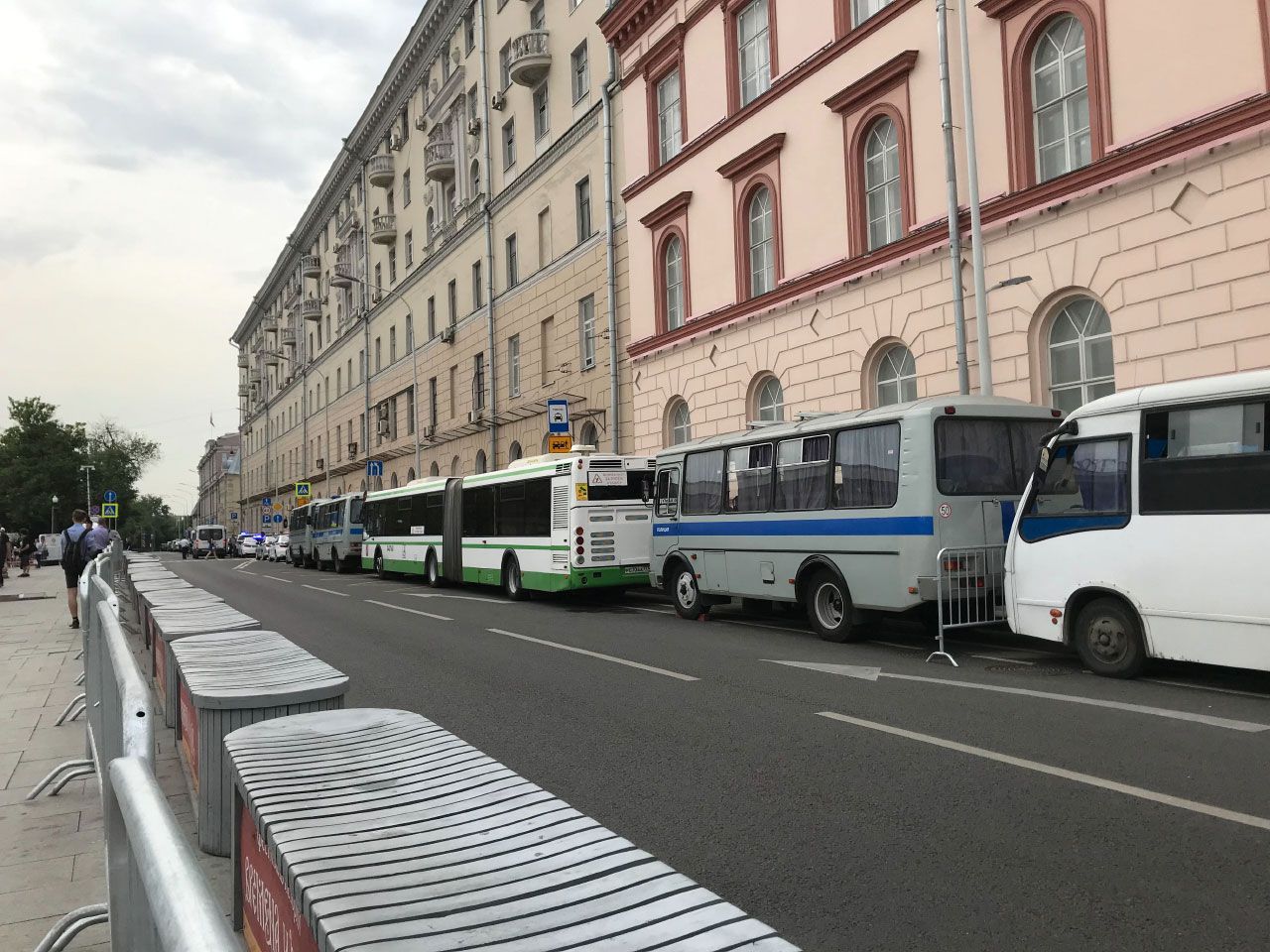 Автозаки на Чистых прудах. До запланированного начала марша остается менее получаса