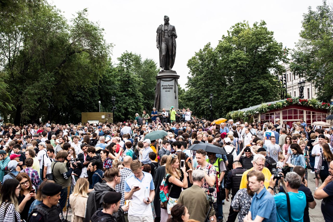 Первыми в поле зрения полиции попадали люди в футболках «Я/Мы Иван Голунов». Для того чтобы оказаться в автозаке, необязательно было вести себя агрессивно, скандировать лозунги или мешать проезду машин.