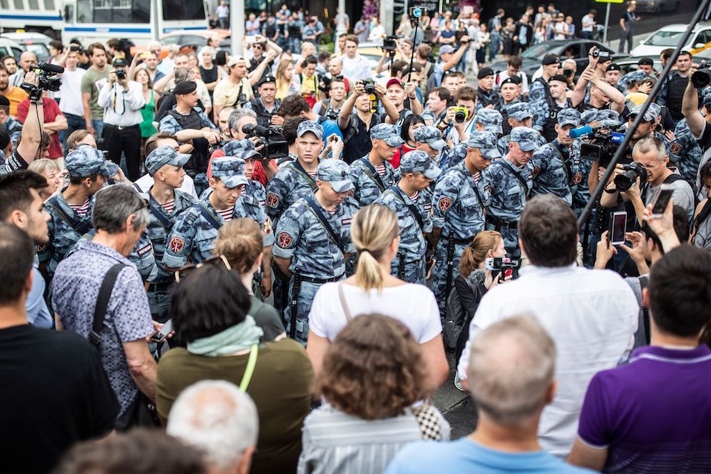 Самые жесткие задержания начались на подступах к Петровке — по сообщениям очевидцев, переулки вокруг улицы были перекрыты, а против протестующих выступили силы Росгвардии. Здесь задерживали уже всех без разбора.