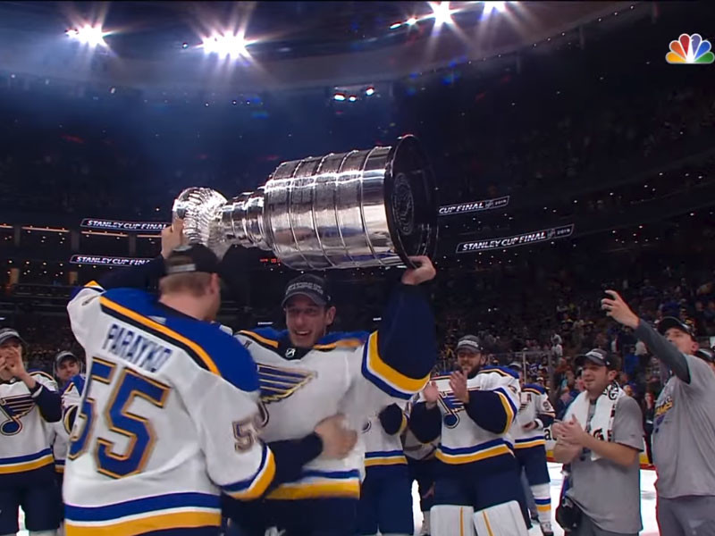 Клуб Национальной хоккейной лиги (НХЛ) "Сент-Луис Блюз" впервые в своей истории завоевал Кубок Стэнли, переиграв в седьмом, решающем матче финала плей-офф команду "Бостон Брюинз" со счетом 4:1. "Блюзмены" выиграли серию до четырех побед со счетом 4-3.