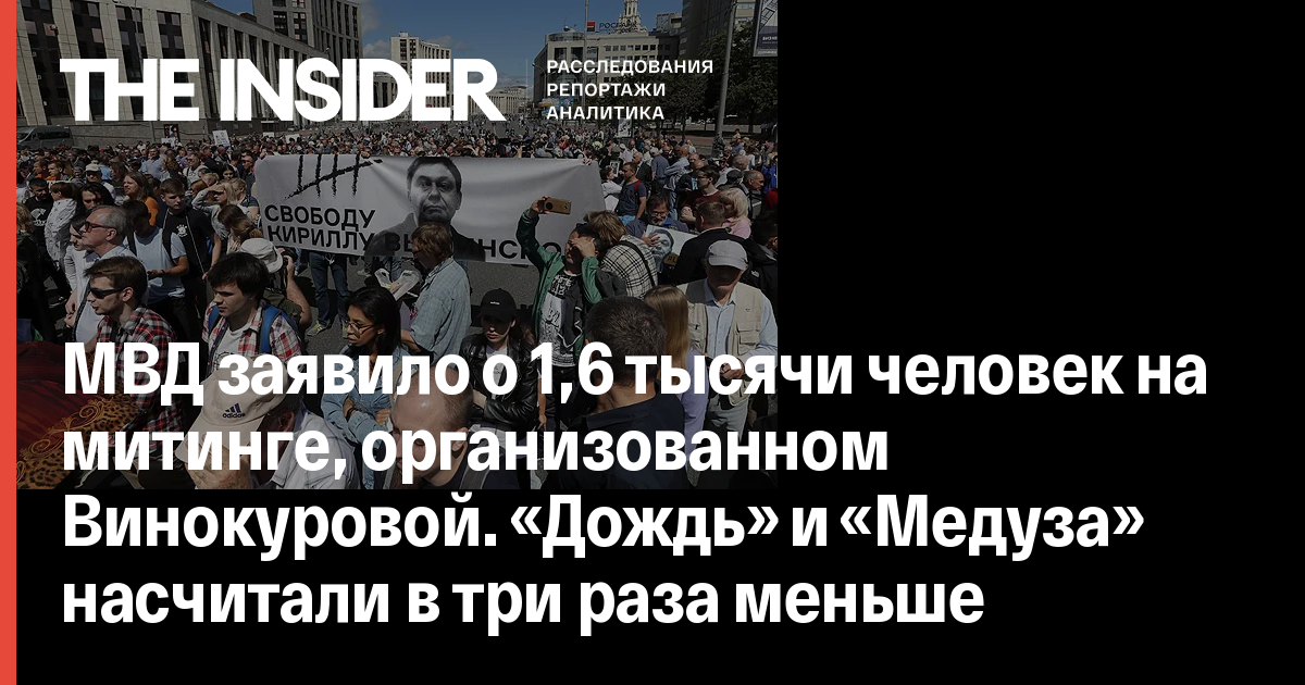 МВД заявило о 1,6 тысячи человек на митинге, организованном Винокуровой. «Дождь» и «Медуза» насчитали в три раза меньше