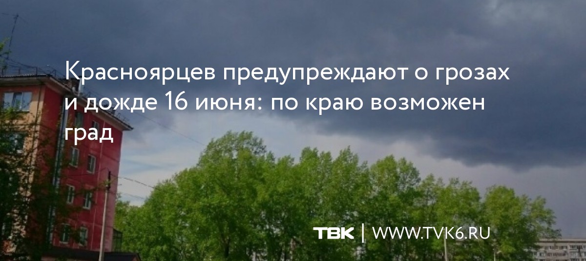 Красноярцев предупреждают о грозах и дожде 16 июня: по краю возможен град