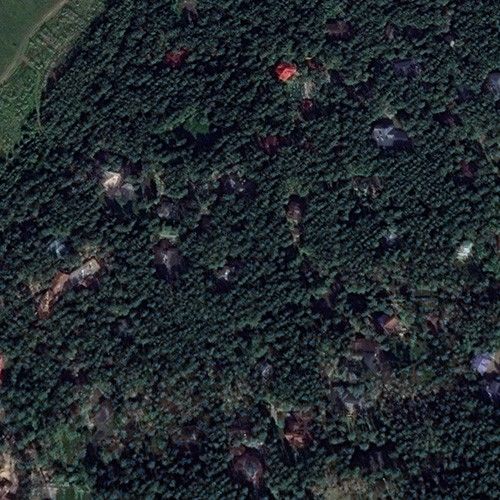 Вид с квадрокоптера на поселок дома отдыха «Успенское». Подобраться к поселку невозможно: густые деревья скрывают от случайных посетителей не только сами дома, но и даже первый, самый высокий забор.