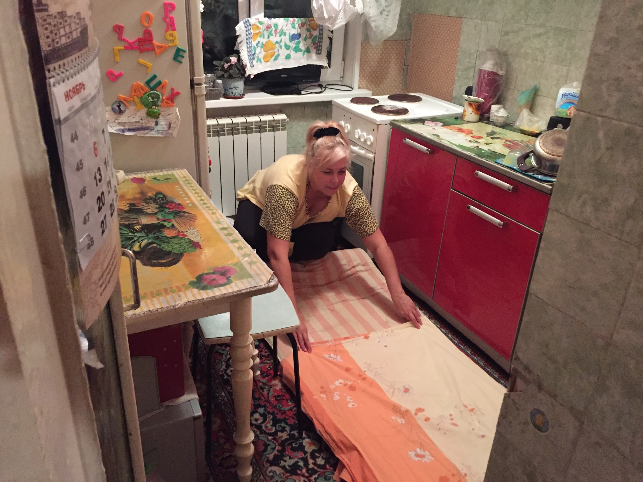 Оксана Мачеча и ее 11-летний сын живут в однушке вместе с пожилой мамой Оксаны. Съехать в собственную квартиру с сыном одинокая мать мечтала давно, именно поэтому и вступила в госпрограмму "Жилье для российской семьи" и уже три года выплачивает ипотеку. Расстилая матрас на шестиметровой кухне, она рассказывает, что спит здесь или с сыном-подростком на одной кровати.