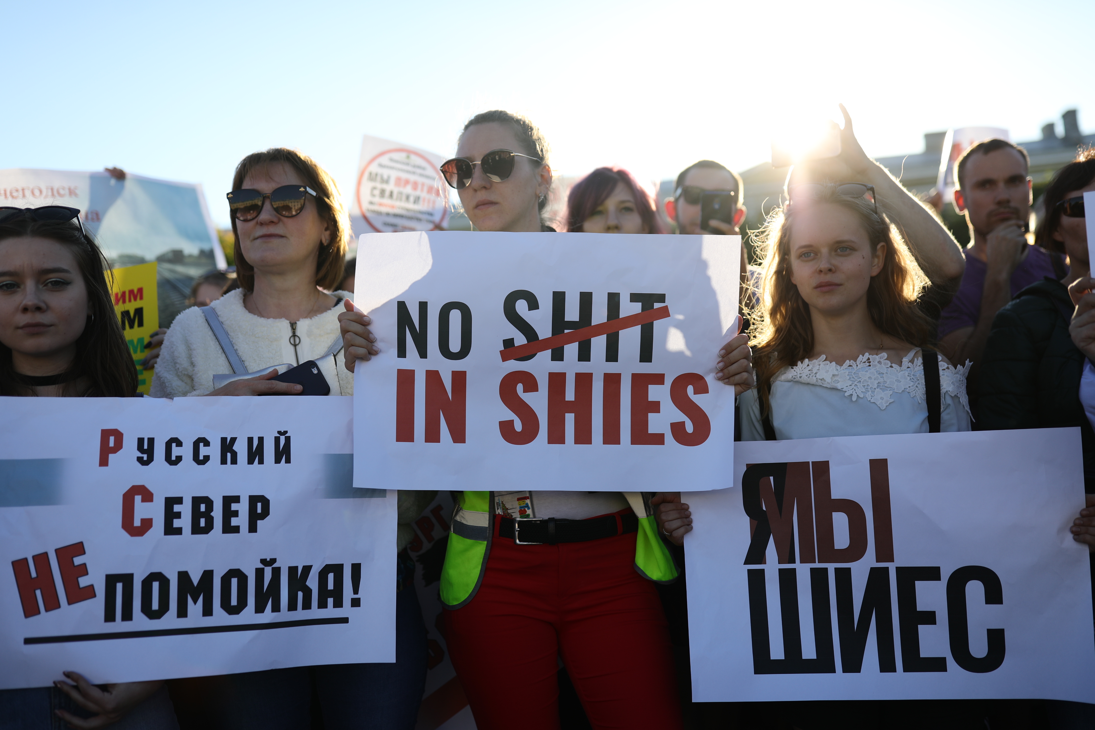 В 2018 году жители Подмосковья начали массовые акции протеста с требованием закрыть мусорные полигоны из-за распространяющегося зловония и массового отравления детей в Волоколамске. К концу года протесты перекинулись и на другие регионы, куда было решено вывозить мусор из Москвы. Жители Архангельской области и Республики Коми пытаются помешать строительству полигона для московских бытовых отходов возле железнодорожной станции Шиес. Противостояние сопровождается стычками с рабочими и охранниками и многочисленными задержаниями; активисты разбили палаточный лагерь возле стройплощадки и установили круглосуточное дежурство, не пропуская бензовозы, чтобы лишить строительную технику топлива. В конце апреля в район противостояния прибыли Нацгвардия и ОМОН.
