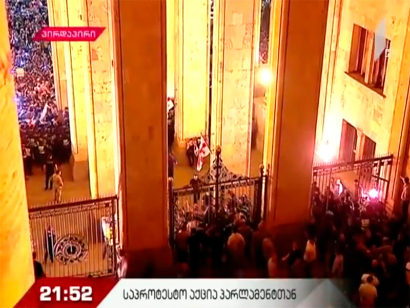 Представители оппозиционных партий Грузии вместе с многотысячной толпой в четверг пошли на штурм здания парламента страны в центре Тбилиси. Это произошло на фоне скандала вокруг депутата Госдумы Сергея Гаврилова. Кадры штурма транслируются в прямом эфире грузинской телекомпании IMEDI.