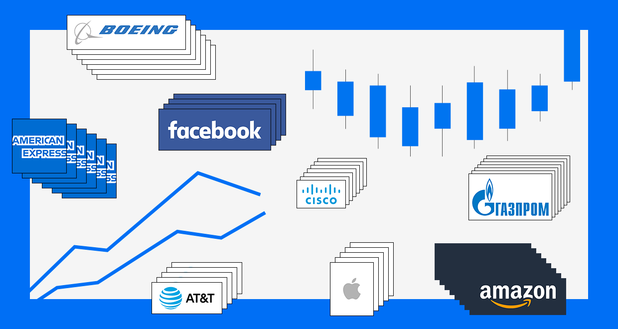 Также не стоит начинать торговать с компаниями из сложных отраслей — например, фармацевтической или коммунальной. Динамика их акций зависит скорее от сложных корпоративных событий, а не общерыночных трендов. При этом, вопреки расхожему мнению, нет никакого смысла покупать, например, именно российские или именно американские акции. Конечно, на отдельные отрасли влияет специфика страны происхождения, но в целом все публичные компании работают по одним и тем же рыночным законам. Можно начать с самых ликвидных бумаг — «голубых фишек», они лучше всего поддаются прогнозам и, как правило, задают тенденции. Это, например, Alcoa, American Express, AT&T, Bank of America, Boeing, Caterpillar, Chevron Corporation, Cisco Systems, а среди российских — «Лукойл», Сбербанк и т.п.