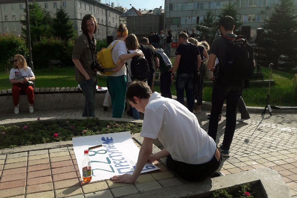 18:30 Митинг организовали фотограф Александра Попова, журналисты НГС и Тайги.инфо Лиза Пичугина и Маргарита Логинова, активисты и просто неравнодушные жители Новосибирска.