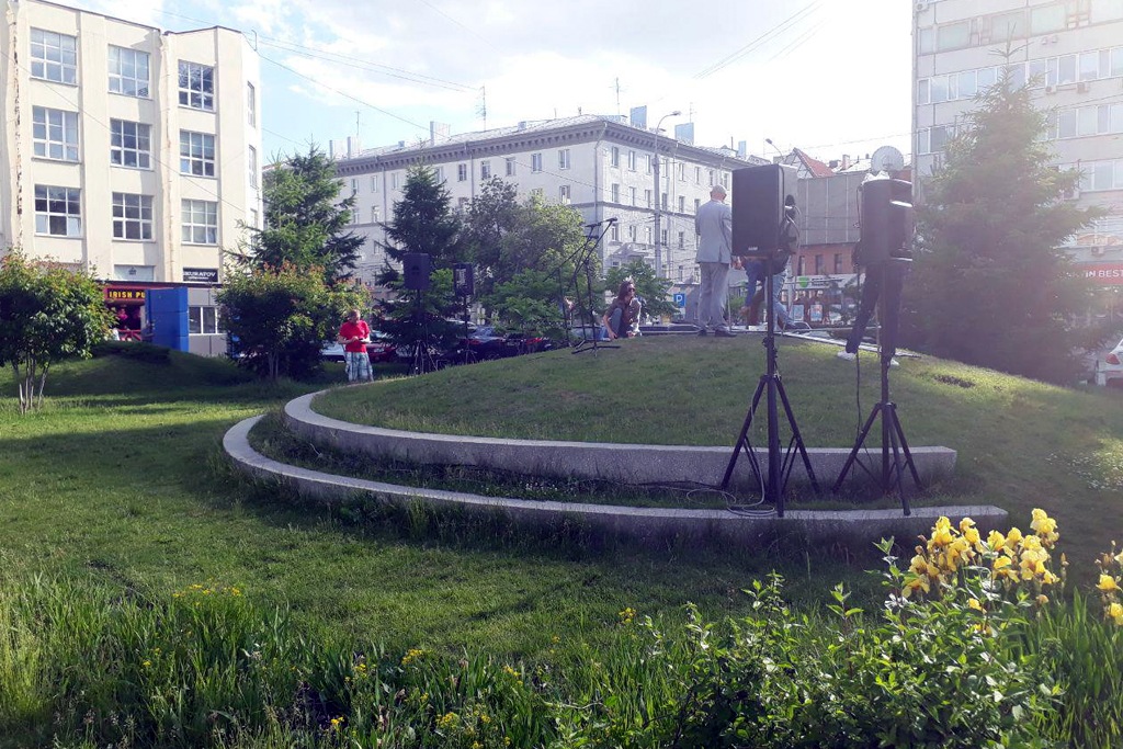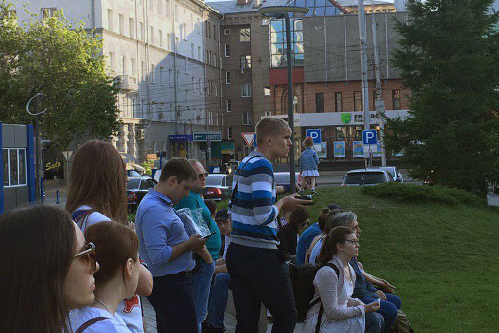 18:35 Пока у фонтана в сквере на Орджоникидзе собралось человек 40. Некоторые участники пришли с детьми. Организаторы еще монтируют сцену.