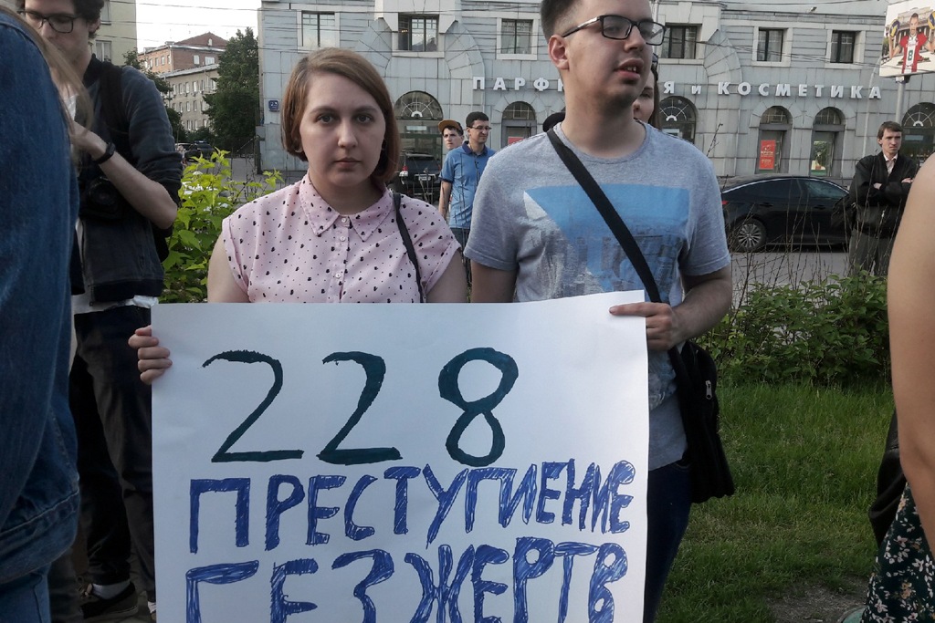 19:01 Участники уже подписывают проект резолюции митинга. В ней организаторы требуют реформировать систему правоохранительных органов России, пересмотреть приговоры по ст. 228 УК РФ (распространение наркотиков), уменьшить сроки отбывания для осужденных по этой статье и уделить особое внимание административному и уголовному преследованию журналистов, которое может быть связано с их профессиональной деятельностью.