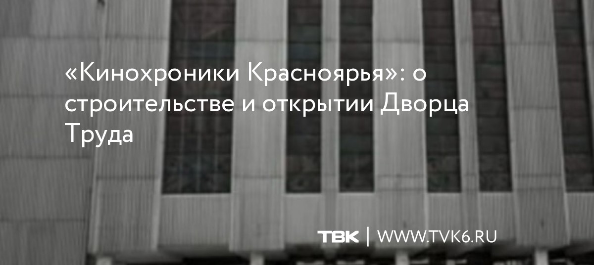 В проекте «Кинохроники Красноярья» Наталья Кечина расскажет, как в 1980 г. в Красноярске открылся Дворец труда.