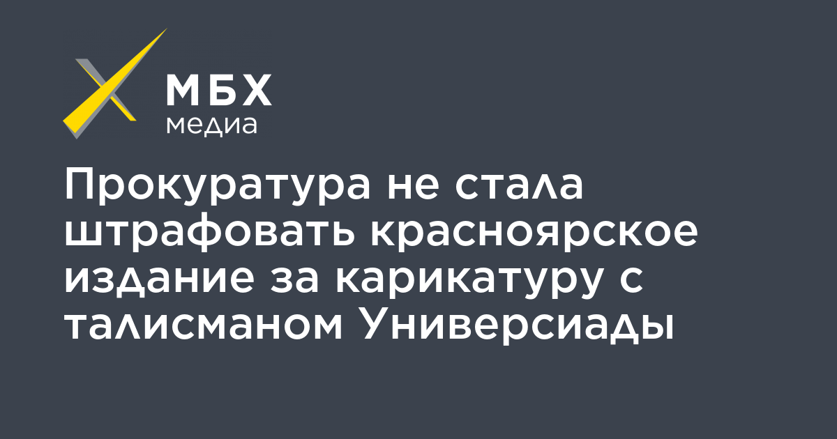 Прокуратура не стала штрафовать красноярское издание «Проспект Мира» за карикатуру с талисманом зимней Универсиады, размещенной на передовице, об этом говорится на сайте газеты.