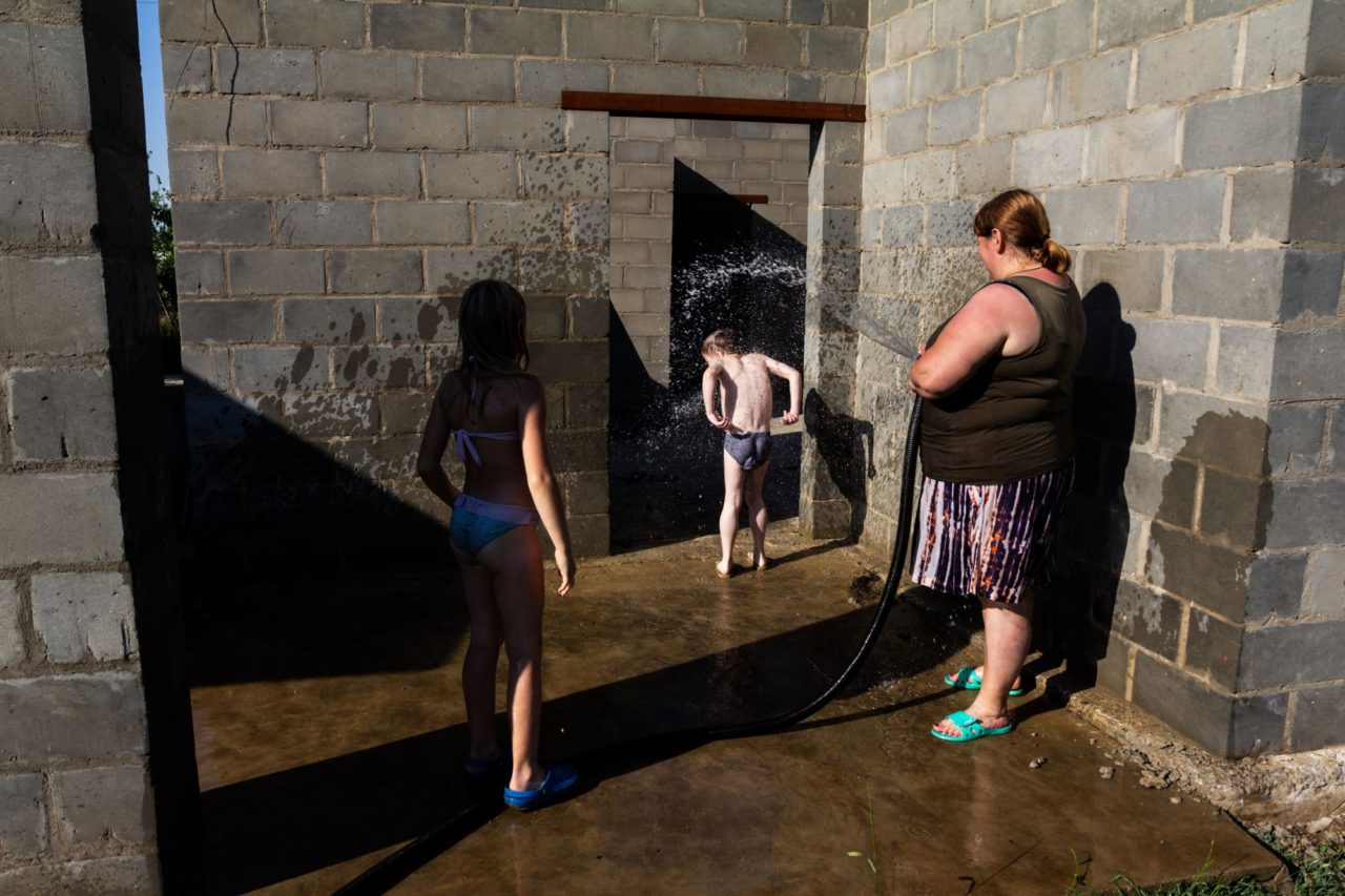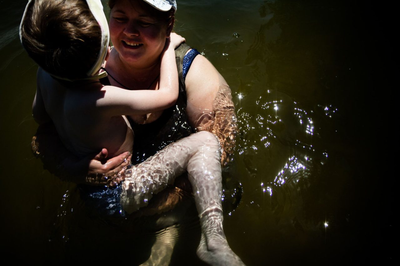 Елена и Стас купаются в пруду. Елена рассказывает, что в лагере Стас каждый день ходил в бассейн и так им проникся, что его было тяжело вытащить из водыФото: Кристина Сырчикова для ТД