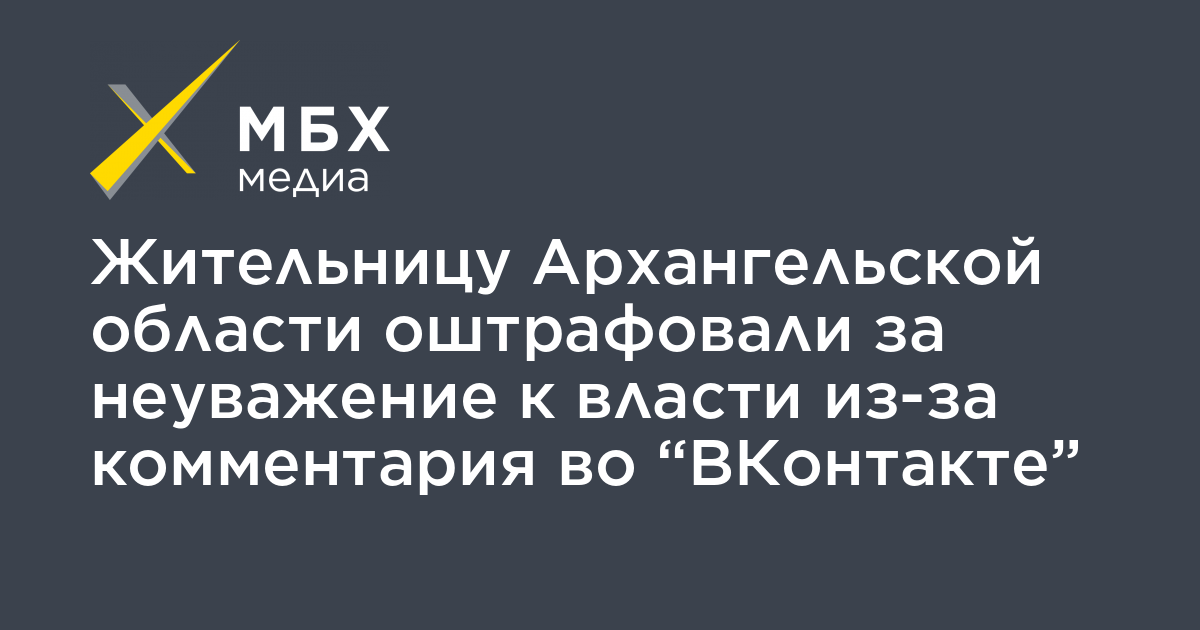 Жительницу города Котлас в Архангельской области Светлану Бакшееву оштрафовали за неуважение к власти из-за комментария во «ВКонтакте». Об этом сообщил «МБХ медиа» адвокат правозащитной группы «Агора» Станислав Селезнев.