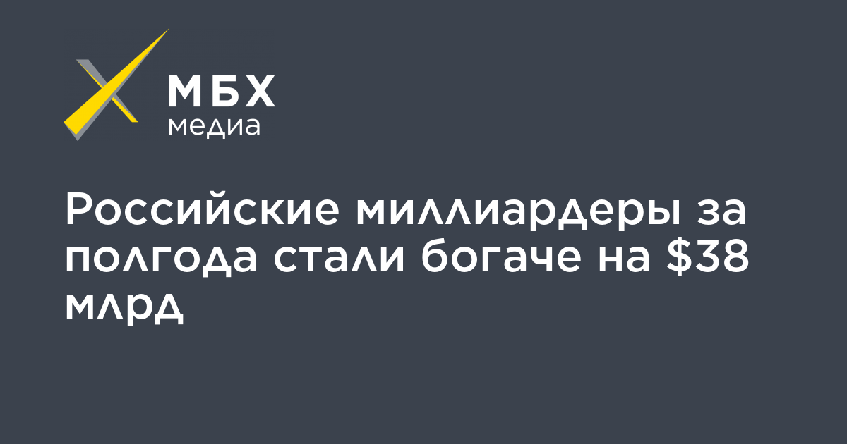 Российские миллиардеры за полгода стали богаче на $38 млрд