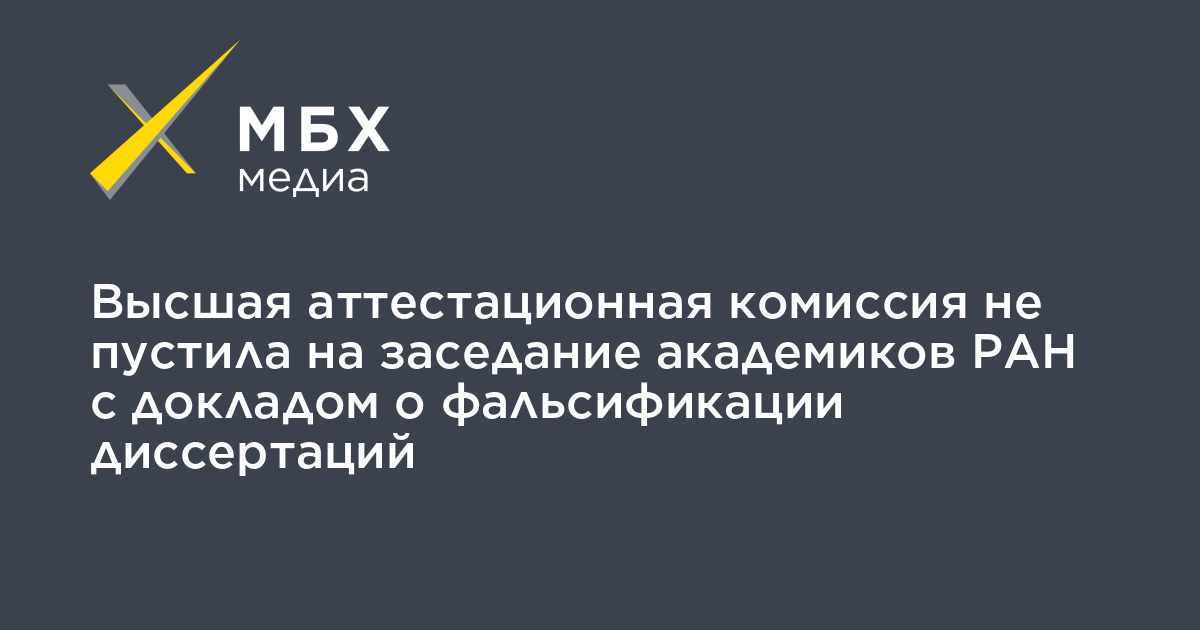 Высшая аттестационная комиссия не пустила на заседание академиков РАН с докладом о фальсификации диссертаций