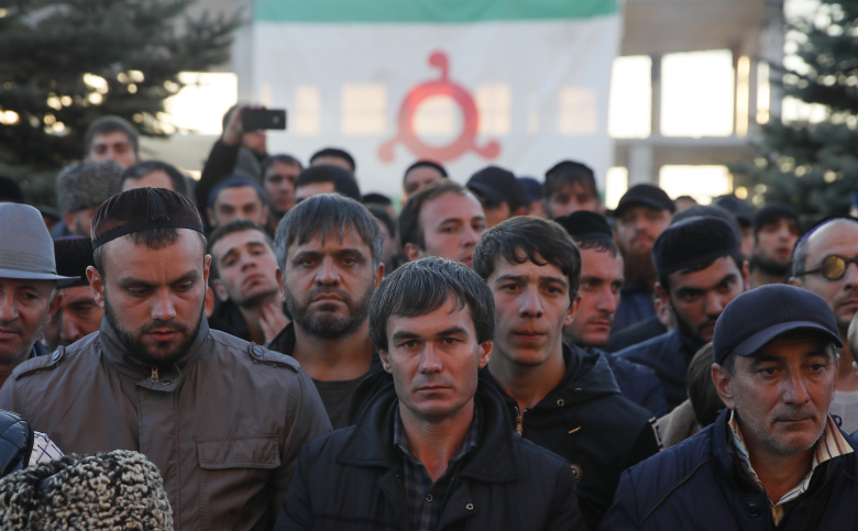 Участники митинга протеста против соглашения о границе между Ингушетией и Чечней, Магас, октябрь 2018 года. Фото: Maxim Shemetov / Reuters