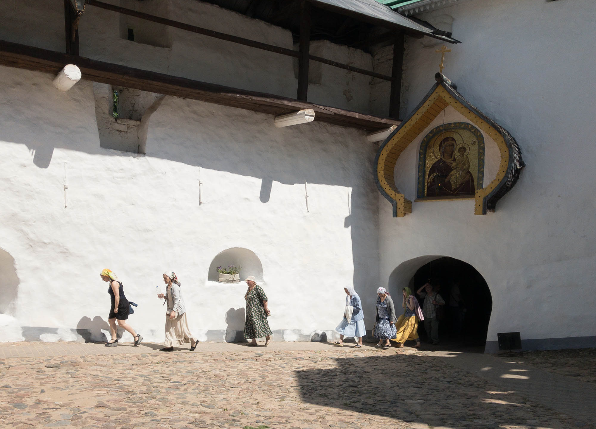 «Я ушел от тети Жени, потому что у нее есть свои дети, внуки, инвалид дядя Ваня — много забот. Тяжело ей и так. Я навещаю ее по праздникам. Но не хочу в деревне жить. Я люблю по Печорам гулять», — рассказывает Женя. Днем, после ранней службы и похода в монастырскую трапезную за супом, он долго ходит по городу, общается с жителями — почти всех знает в лицо.