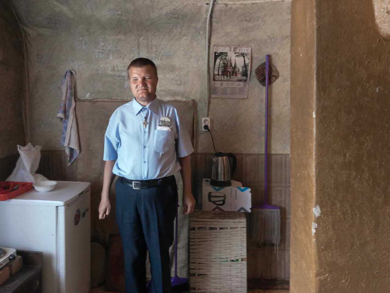 «Шнур плавился, проводка плохая была, — показывает он на электрический чайник у стены. — Но теперь Олег Морозов мне сделал. А обогреватель все равно совсем не греет. Я с детства в храм хожу. Молитва, бывает, помогает. Молюсь, хочу добиться комнаты с удобствами. Но что толку — все равно не шевелятся», — грустно машет он рукой.