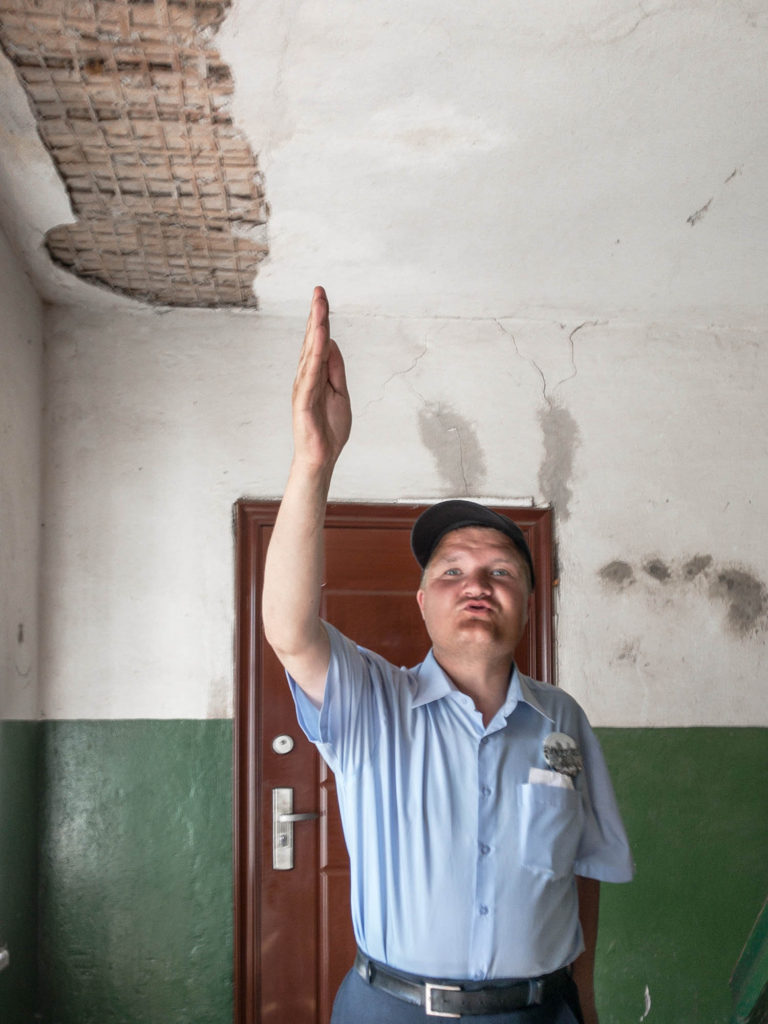 Женя в подъезде своего домаФото: Дмитрий Марков для ТД Централизованного отопления в Жениной комнате нет — есть почти развалившаяся на кирпичи печка.