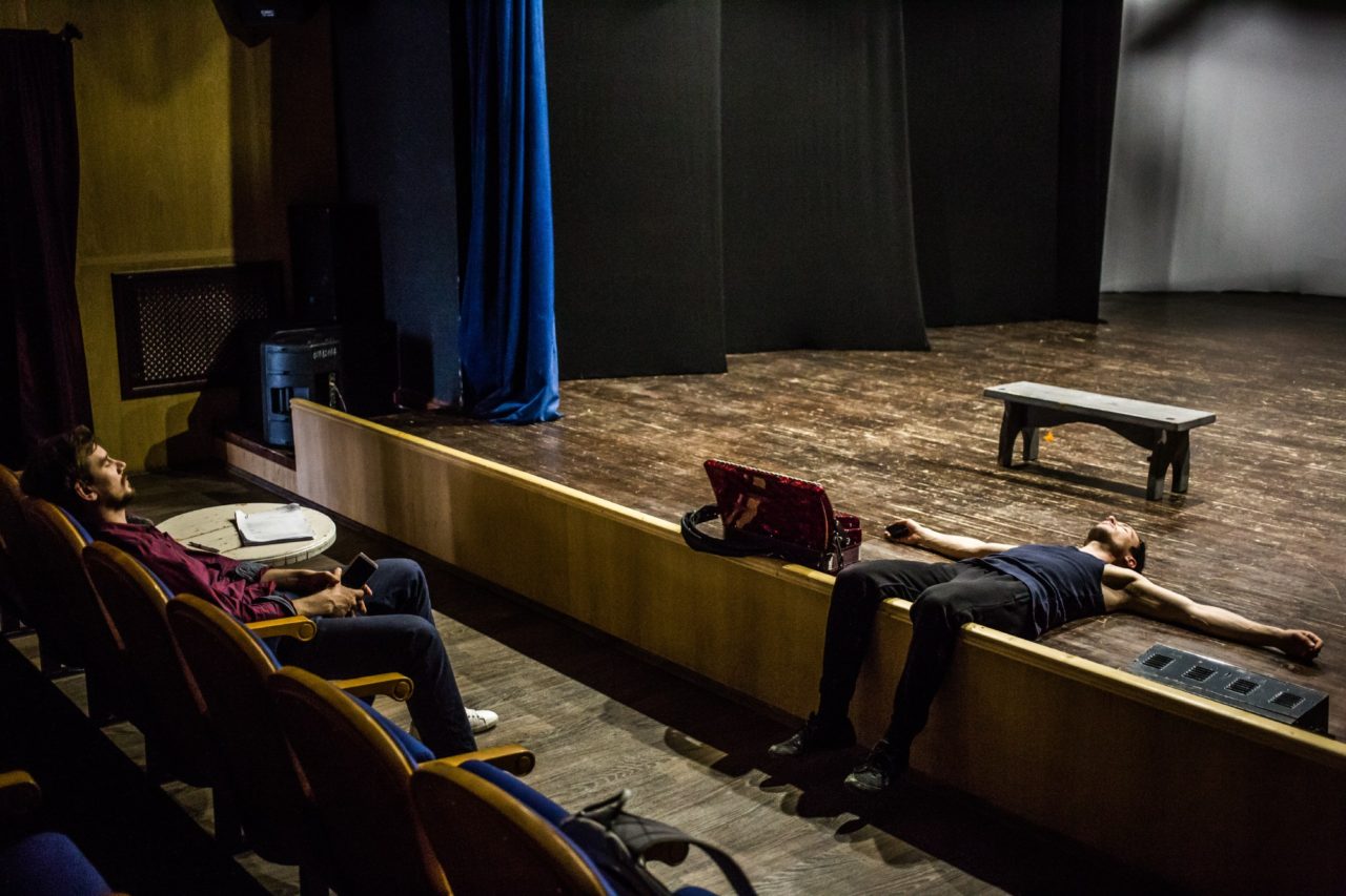 Дмитрий и Николай отдыхают после рабочего дняФото: Антон Климов для ТД «Первое впечатление было крутое, красоты сумасшедшие. Мы начали заниматься вокальным тренингом. Мечтаем, чтобы в Мотыгине запели! — подхватывает Горлов. — Местные гордятся своим театром, приезжим про него рассказывают в первую очередь. Но есть и смешные очень. Бабулька одна на остановке как-то меня отчитала: «Из театра, что ль? Знаю я их всех, лентяи они, ниче делать не хотят. Я в больнице уборщицей работаю, всех видела».