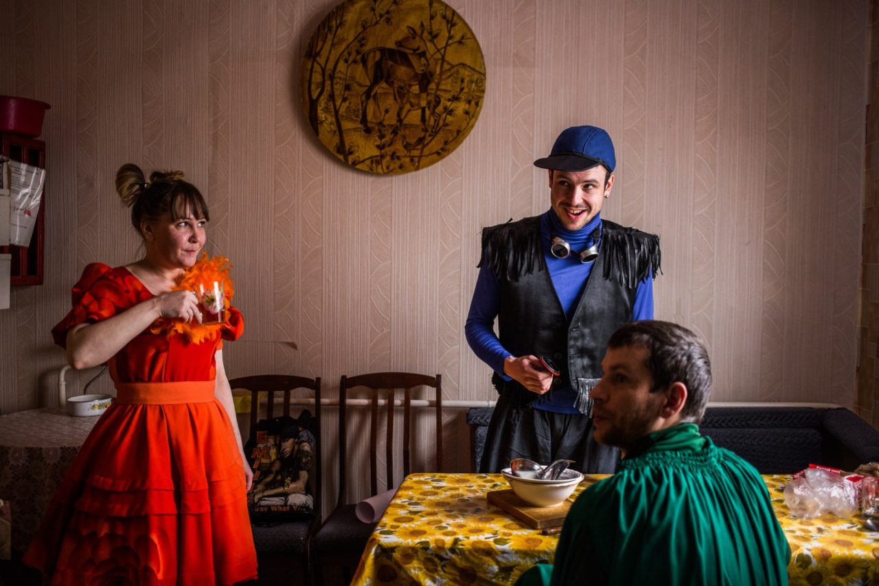 До начала представления еще час, волнение в театре нарастает. Чтобы не мешать, ищу незанятых актеров. Девушка с черной косой — Дарья Миллер, из Барнаула, приехала в Мотыгино в 2016 году с одним маленьким чемоданом.