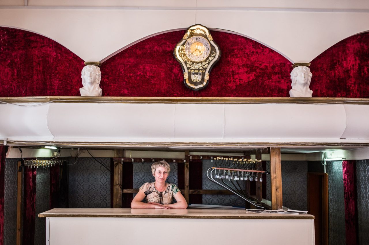 Нина Федоровна, костюмерФото: Антон Климов для ТД Фойе постепенно наполняется. Бабушка с внучкой лет девяти: «Мы в первый раз, всю жизнь здесь живем, а в театре не были». Женщина с гурьбой подростков, Римма Кириллова, директор школы и историк из соседнего поселка Раздолинска, привезла своих учеников. Мужчина в отглаженной рубашке с длинными рукавами — видно, что в такой одежде ему неловко. «Сергей, водитель лесовоза, вот дочка уговорила сходить, она уже видела постановку, ей понравилось». Подростки щебечут у стойки буфета. Римма Владимировна говорит, что новые постановки старается не пропускать: «Театр здесь — это, конечно, чудо, хотя мы к нему и привыкли. Но каждый раз будто в сказку окунаемся, за этим и ездим».