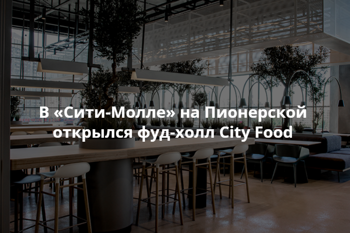 В торговом комплексе«Сити-Молл» на Коломяжском проспекте открылся фуд-холл City Food. Он работает ежедневно с 10:00 до 22:00.