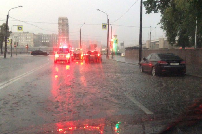 В Невском районе вечером 2 июля из-за ливня затопило дороги и тротуары. В частности, потоп произошел на Народной улице и под Володарским мостом, сообщают в соцсетях местные жители.