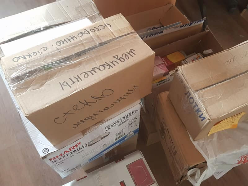 Люди у общественной приемной ЕР / facebook.com4. Телеграмм канал «Сарма» опубликовал видео на котором группа людей, предположительно в здании приемной ЕР на Российской 20, спешно расклеивает на коробках с гуманитарной помощью логотипы и символику «Единой России»