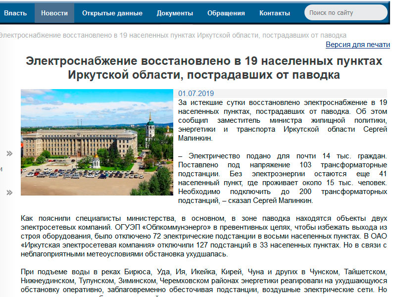 Сайт "Единой России" / er.ruВ насыщенной работе по решению проблем электроэнергии, он договорился с некими энергетиками, которые уже согласились помочь в создании добровольческих ремонтных групп (то есть, они согласись сделать свою работу?), тем более что после обращения столь серьезного человека. Однако проблема в том, что в этот же день как новость появилась на сайте партии, немногим ранее появилась и информация о восстановлении электроснабжения в 19 населенных пунктах. То есть пока один договаривается, другие уже отчитываются.