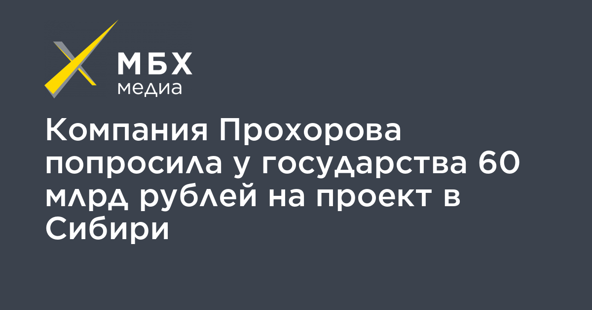 Компания Прохорова попросила у государства 60 млрд рублей на проект в Сибири
