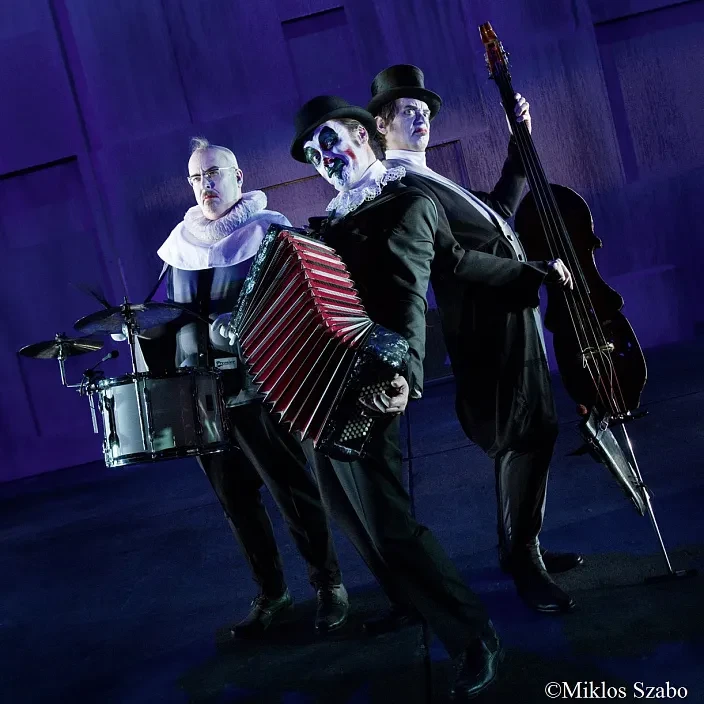 Играют они — «Гамлета», озвученного новыми мрачными песнями, хохотком из лондонской подворотни, надгробным плачем над омутом Офелии. Играют его на гармошке и на пиле, на укулеле, контрабасе, колокольцах, терменвоксе и банальном фортепиано. В любом случае: рассуждения принца Датского касаемо путешествия короля по кишкам нищего им очень близки.